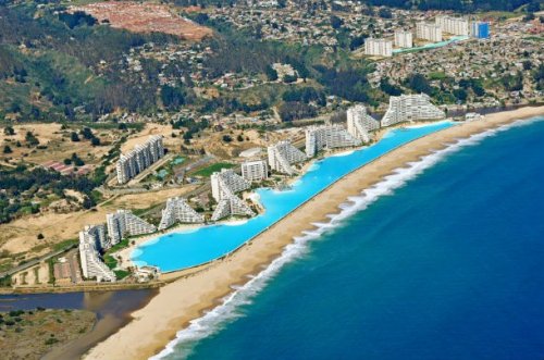 В самом крупном плавательном бассейне в мире содержится приблизительно 249837 кубических метров воды и могут одновременно плавать тысячи людей. Кристальная Лагуна (Crystal Lagoon) на курорте «San Alfonso del Mar» в Чили даже достаточно большая для того, чтобы плавать в ней на паруснике. Там даже есть свой искусственный пляж.