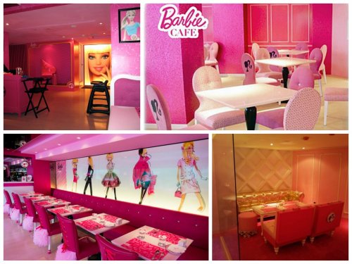 Барби кафе, первое тематическое кафе на тему Барби в Тайване открылось в прошлом году, и да всё украшено розовым цветом и пластиком. Конечно же ресторан был лицензирован создателем Барби, компанией «Mattel». Гигант-производитель игрушек из США дал кафе зелёный свет в надежде, что это поможет продвижению бренда Барби и моды на её, что действительно работает.