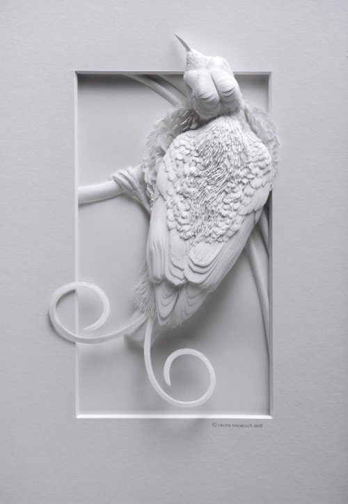 Главенствующей темой в его работах является природа и мир животных. Создав эскиз будущей работы, с помощью ножа X-Acto, скальпелей и различных видов ножниц мастер тщательно разрезает бумагу и склеивает множество кусочков в картину, поражающую своей реалистичностью.