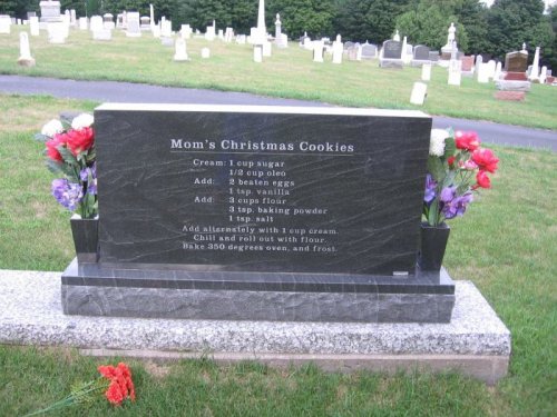 Рецепт "маминого рождественского печенья" на задней стороне надгробия