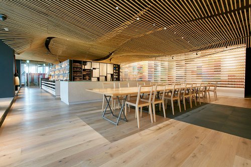 Интерьер магазина столь же впечатляющ, как и то, что он предлагает. Архитектор Кенго Кума (Kengo Kuma) создал открытое пространство, обрамлённое волнами бамбуковых палочек, благодаря чему оно выглядит очень лаконично, экспансивно и приветливо.