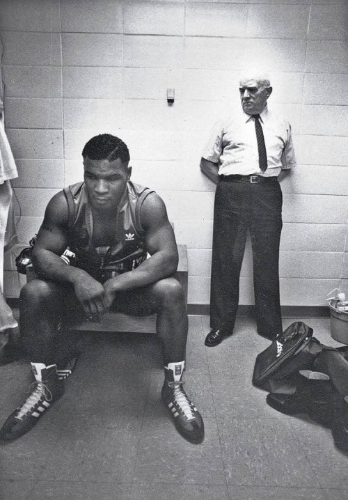 Майк Тайсон со своими тренером, Касом Д'Амато, перед своим первым профессиональным боем