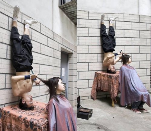 4. Кунг-фу-парикмахер, который делает стрижку вверх ногами