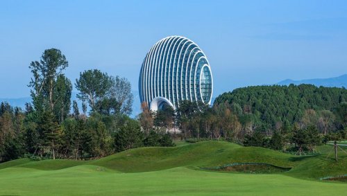 Гостиница «Санрайз Кемпински», расположенная в 60 километрах от центра Пекина, выглядит как восходящее солнце, а при взгляде сбоку, гостиница напоминает ракушку, что символизирует удачу в китайской культуре. Открытая в ноябре прошлого года 97-метров гостиница высшей категории с привлекательным внешним видом расположена на побережье озера Янки и обладает 21 этажом с 306 гостиничными номерами, а также комнатами для совещаний, развлекательными и спортивными залами, а также разнообразными ресторанами и барами. Здание было спроектировано архитектурной компанией из Шанхая «Huadu Architect Design Co».