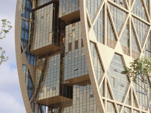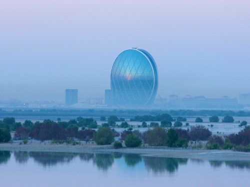 Штаб-квартира "Aldar”, расположенная в Абу-Даби, выглядит как монета, стоящая на боку. Здание состоит из двух выпуклых круглых фасадов, связанных узкой полосой зубчатого стекла. Это легендарное здание является кругом в вертикальной плоскости и изогнуто в других плоскостях. Высота 23-этажного здания составляет 121 метр. Здание было разработано компанией "MZ Architects”.