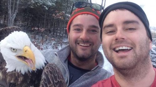 Фотография Майкла Флетчера (Michael Fletcher) на Facebook является настоящей без никакого фотошопа. Он сделал это селфи со своим братом Нилом и белоголовым орланом, который свирепо смотрит в объектив.