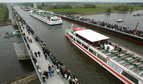 4. В Германии существует водяной мост через реку Эльбу. Он позволяет судам пересекать реку.