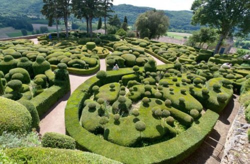 Это место, также известное как висячие сады Маркессак (Marqueyssac), испещрено 6 километрами тропинок, находящихся в лабиринте из 150000 самшитовых кустов, постриженных вручную.