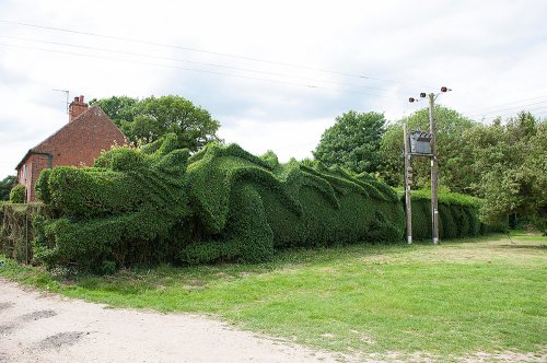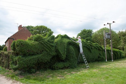 На живую изгородь Джона Букера приходят посмотреть многие: 40-метровый дракон стал местной достопримечательностью. Чтобы содержать этот шедевр топиарного искусства британец каждую неделю тратит почти 8 часов, подрезая кустарник в нужных местах. Поддерживать форму дракона Джону помогает супруга, работающая в области графического дизайна.