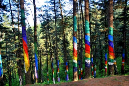 Представляющий собой сотни разукрашенных в яркие цвета сосен, лес превратился в живую канву, которую стоит увидеть своими глазами.