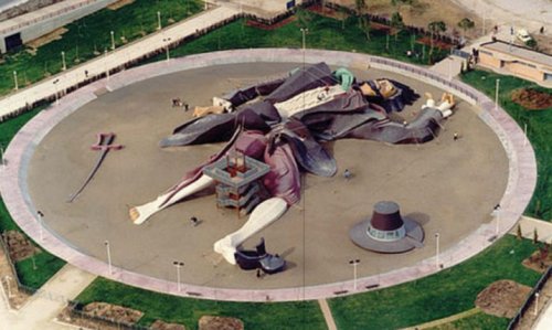 Парк создан по мотивам "Путешествий Гулливера" Джонатана Свифта. И это не просто гигантская бетонная фигура Гулливера, а игровая площадка со всевозможными тематическими горками, спусками, канатами, лестницами, пещерами и другими развлечениями.