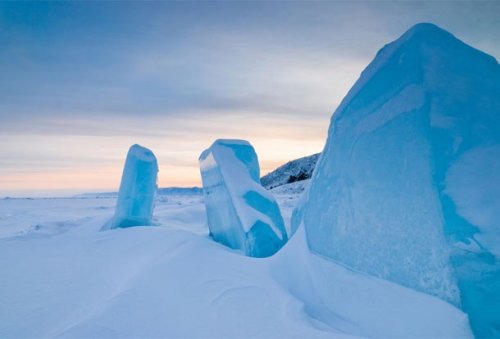 Озеро Байкал, считающиеся одним из самых больших, глубоких и чистых озёр в мире, каждый март становится местом, где можно наблюдать потрясающее природное явление. Изменения температур, ветра, мороза и солнечных лучей вызывают появление трещин на поверхности замёрзшего озера, из-за чего лёд ломается, образуя гигантские осколки бирюзового льда, которые привлекают фотографов со всего мира.