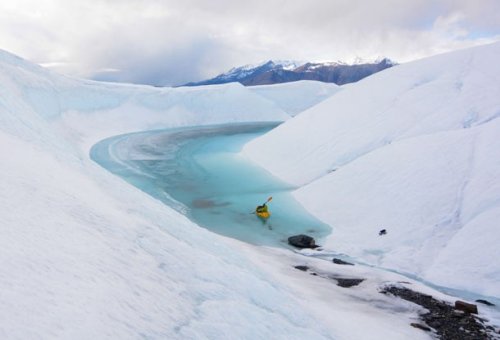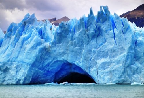 Ледниковая пещера — это пещера, образованная во льду ледника водой, протекающей через него или под ним. Эта потрясающая ледниковая пещера, частично находящаяся под водой, была сформирована в Леднике Перито-Морено (Perito Moreno Glacier) в Аргентине. Высота этой ледниковой пещеры над водой составляет приблизительно 60 метров.