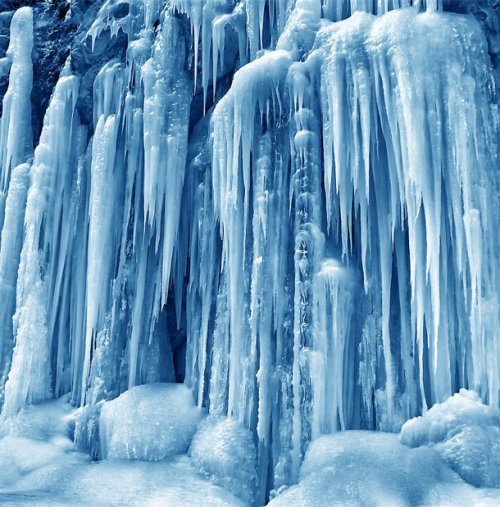 Замёрзшие водопады образуются постепенно благодаря прогрессирующему замерзанию текущей воды.