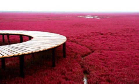 Впрочем, это вовсе и не пляж как таковой, просто местные жители так называют это место. Это одна из крупнейших в мире заболоченных территорий, покрытая сведой, которая осенью приобретает красный цвет.