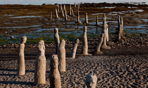 Взгляд на спокойный пляж реки Сент-Лоренс прерывается довольно жуткой и странной коллекцией более чем из 100 человеческих фигур, которые будто поднимаются из волн.