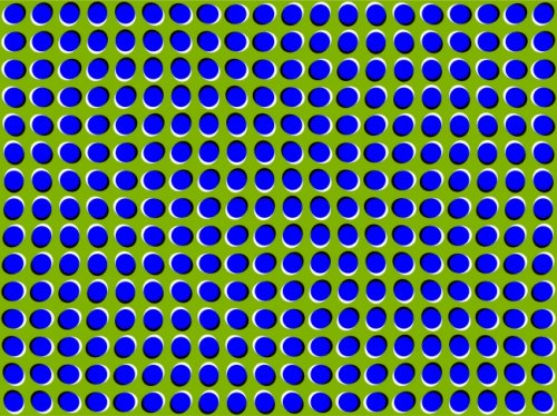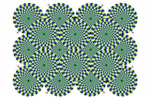 Благодаря определённым цветовым контрастам и форме предметов, изображённых на рисунке, когда вы его рассматриваете, создаётся иллюзия движения.