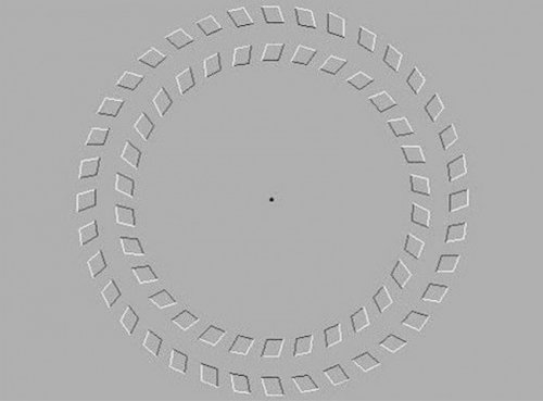 Если, глядя на чёрную точку, приблизить или отдалить голову от монитора, то внешний и внутренний круги будут вращаться в разных направлениях.