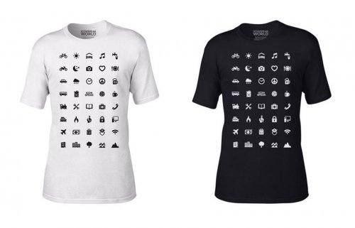 Сталкиваясь с языковым барьером, они каждый раз были вынуждены рисовать символы на клочках бумаги, карте или даже палкой на земле, чтобы изъясняться с местными жителями с помощью рисунков. Тогда они подумали, что было бы круто постоянно иметь при себе этот набор знаков. Так и родилась идея создать такую универсальную футболку.