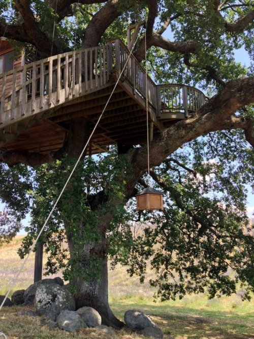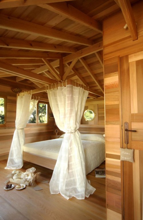В домике на дереве, площадью 44 кв. м, оборудованном по классу "люкс", можно отдохнуть с комфортом: гостям гарантируется полное уединение, а еду и напитки доставляют по желанию.