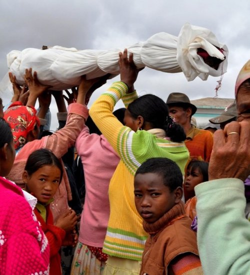 10. Хотя преобладающей религией на Мадагаскаре является христианство (завезённое миссионерами), большинство жителей по-прежнему поклоняются культу предков, веря в магическую силу умерших прародителей и сородичей. Даже современные малагасийцы считают умерших родственников частью семьи. Многие из них хоронят умерших в гробах, которые затем относят высоко в пещеры и скалы (чтобы они были ближе к своим предкам, которые уже на небесах).
