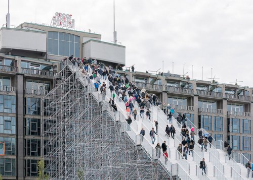 Полностью функционирующая лестница от компании MVRDV, состоящая из 180 ступенек, работает с 10 утра до 10 вечера и будет действовать до 12 июня. На ней уже успело побывать 8000 человек.