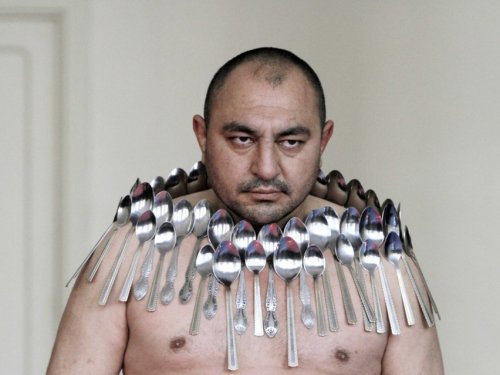 Этибар Элчиев (Etibar Elchiyev) из Тбилиси (Грузия) прикрепил к своему телу 50 ложек, установив мировой рекорд в 2011 году.
