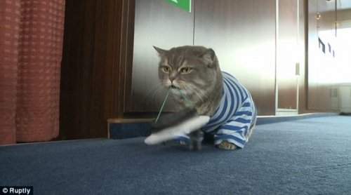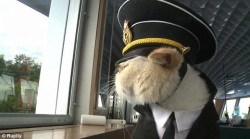 Впрочем, недавно на теплоходе у него уже появился помощник — Боцман, шотландский кот, которого завели в компанию Матросу. Больше всего Боцман обожает где-нибудь поваляться, играясь со своей фуражкой.
