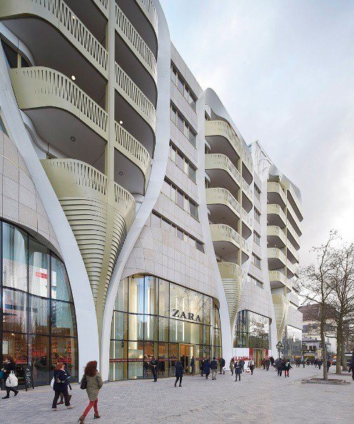 Этот торгово-жилищный комплекс, построенный голландской компанией UNStudio, сочетает в себе закруглённые архитектурные формы и алюминий золотистого оттенка, что придаёт зданию необычайно гармоничный и роскошный стиль.