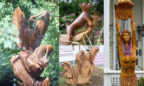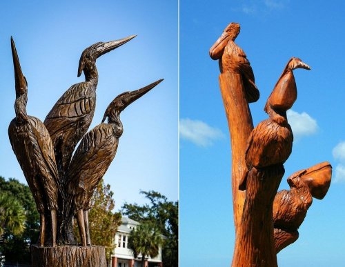 Эти скульптуры, вырезанные из деревьев после урагана Катрина, стоят вдоль трассы 90 в Билокси (Biloxi) (штат Миссисипи, США) и являются одной из самых популярных достопримечательностей города.