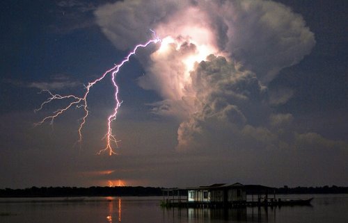 В устье реки Кататумбо в Венесуэле происходит необычное природное явление под названием "вечная буря": каждый день с наступлением сумерек в течение примерно 10-ти часов кряду небо озаряют молнии.