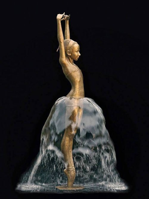 Талантливый скульптор создаёт вот такие прекрасные скульптуры-фонтаны из бронзы, где вода играет существенную роль во всей композиции.