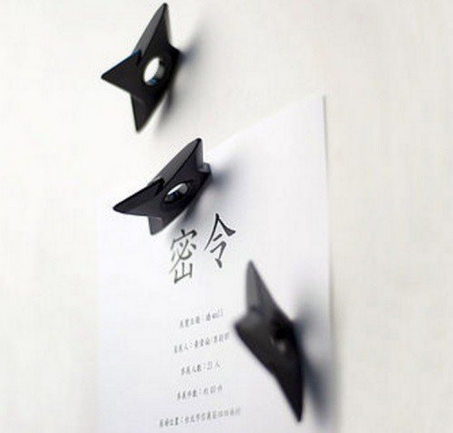 Заканчивает этот пост борьба с ниндзя! Эти "звёздочки", может, и не причинят такой же боли, как оригинальные, но зато наверняка многим захотелось бы попробовать метнуть их в холодильник, чтобы увидеть, как они вонзятся в дверцу.