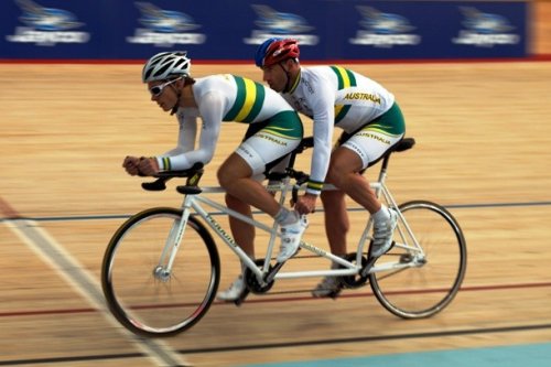 Велосипеды-тандемы в настоящее время главным образом используются в таких соревнованиях, как Паралимпийские игры, в которых участвуют слепые и слабовидящие велосипедисты, едущие в паре со зрячим пилотом, сидящим впереди. Велосипедные гонки на тандемах были олимпийским видом спорта в летних Олимпийских играх 1908 года, а затем с 1920 по 1972-ой год.