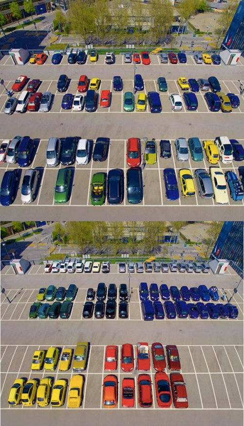 Как видно по фотографии, некоторые водители приехали с опозданием (или, скорее всего, они просто не хотели завершать "стрелу" белым цветом), но общий эффект производит потрясающее впечатление!