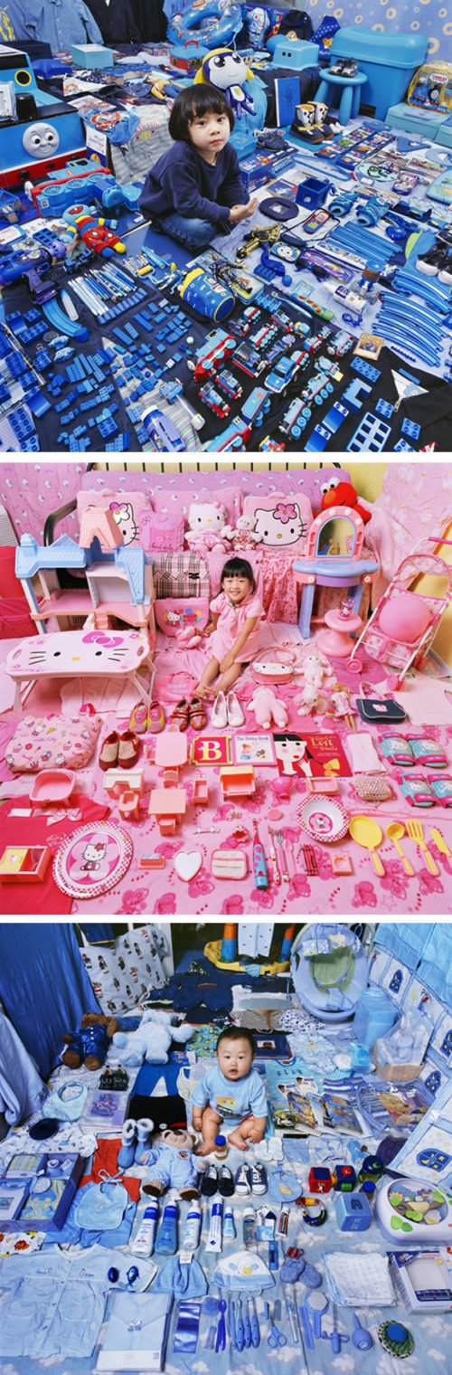 В своей работе ЧонгМе Йон (JeongMee Yoon) исследует природу гендерного давления на детей. Этот продолжающийся проект включает в себя серию фотографий девочек и мальчиков в окружении огромных коллекций предметов розового и синего цвета.