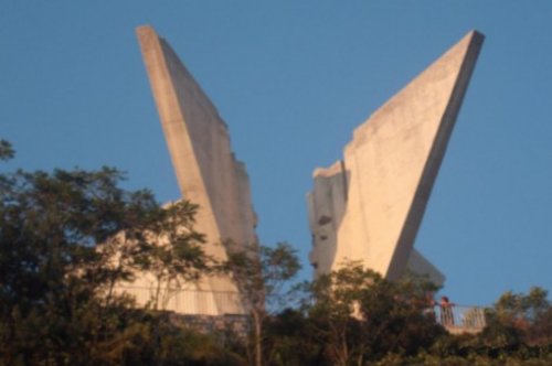С этого впечатляющего памятника, возведённого в виде двух крыльев, открывается прекрасный вид на город, расположенный внизу.