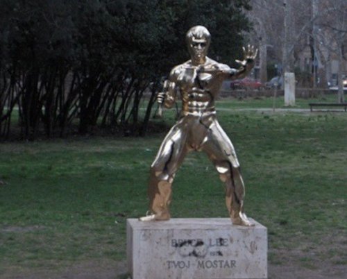 Спустя годы после войны Мустар остаётся разделённым городом: боснийское мусульманское население живёт с восточной стороны реки Неретва (Neretva), в то время как западный берег реки населяют практически исключительно хорваты. Однако любовь к Брюсу Ли и память о нём — одно из тех редких вещей, которые всё ещё объединяют людей. Чтобы чтить его память, жители возвели первую в мире статую легенды боевых искусств и философа Брюса Ли.