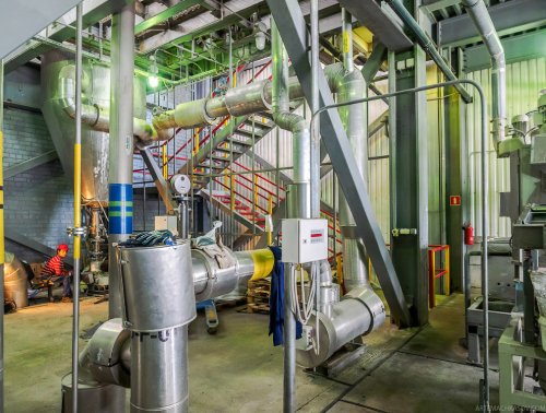 После этого хлопья пневмотранспортом подаются в третий цех — на линии экструзии и гранулирования. Процесс полностью автоматизирован.