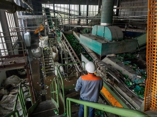 Первый цех занят отбором и сортировкой бутылок. Все оборудование предприятия европейское, от лидеров отрасли переработки ТБО — BRT Recycling Technologie GmbH (Германия), TOMRA Systems ASA (Германия), RTT Steinert GmbH (Германия), BOA (Голландия), SOREMA (Италия), BUHLER AG (Швейцария).