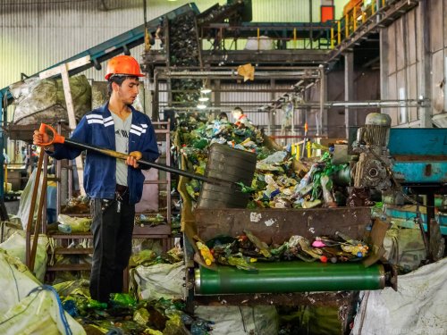 В России не привыкли к тому, что мусор может стоить денег, да и раздельный его сбор не развит (доля «разделки» у завода — не более 1%). Часть бутылок завод закупает у фитнес-клубов и отелей, но и это погоды не делает. Главный источник сырья — обычные свалки со всей страны (везут даже с Урала), где мусор сортируют вручную, выделяют из него бутылки, после чего пакуют и продают заводу. 300-килограммовые кипы грязных прессованных бутылок привозят на территорию завода, где они ждут своего часа.
