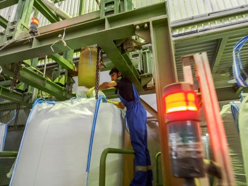 Готовый продукт упаковывают в большие мешки, после чего отправляют заказчикам.