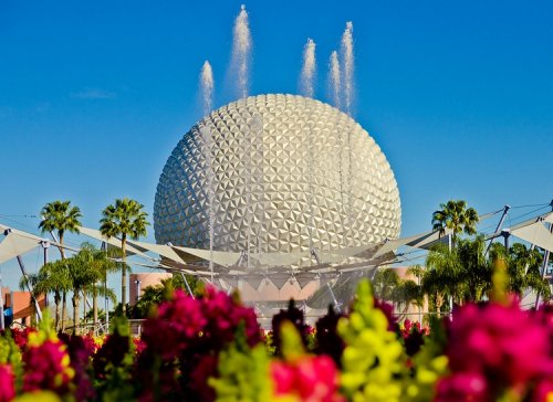 Фонтан Наций, расположенный в тематическом парке развлечений "DisneyWorld", Лейк Буэан Виста, Флорида, США, "танцует" под музыкальные произведения из мультфильмов Диснея.