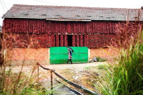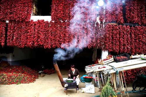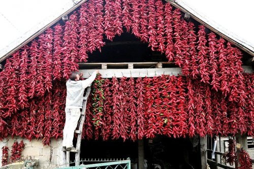 С приближением осени вся деревня преобразуется, становясь красной от множества нитей сушёного перца, который развешен по всей деревне в ожидании своего "звёздного часа".