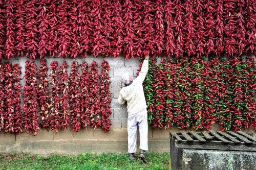 Каждый из этих красных стручковых перцев, который впоследствии станет вкуснейшей приправой, нанизан на нить вручную и до сих пор сушится старым традиционным способом — с помощью солнца и свежего воздуха.