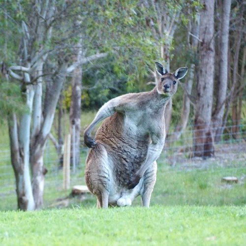 Гуляя на природе со своей сестрой, Уильям увидел группу из десяти кенгуру, девять из которых при виде людей разбежались, кроме этого "качка". Он остался стоять на месте.
