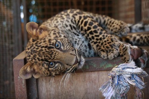 Леопард провёл в небольшом вольере приюта 3 года, прежде чем его сотрудники вышли на международную организацию "Four Paws" ("Четыре лапы"). Понимая, что условия содержания животного не соответствуют даже самым начальным требованиям (ему негде было даже побегать, а вольер находился рядом с вольером со львами, их естественными врагами), они стали действовать.