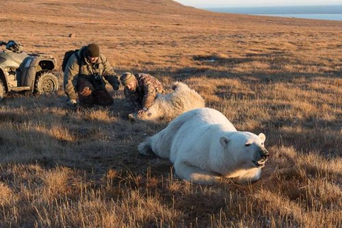 Чтобы помочь маленькому мишке, пришлось усыпить обоих. Чужеродный предмет из пасти медвежонка был благополучно извлечён.