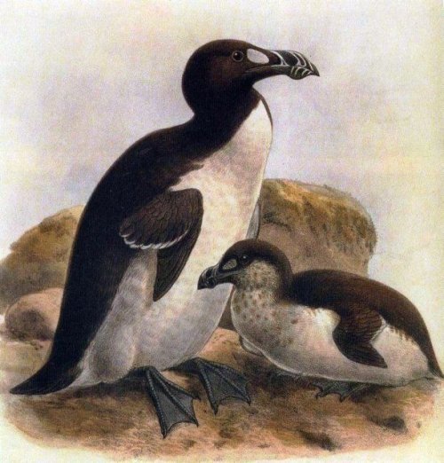 Бескрылая гагарка была крупной нелетающей птицей из семейства чистиковых, которая вымерла в середине XIX века. Когда-то широко распространённая по всей Северной Атлантике, начиная с Испании, Исландии, Норвегии и Великобритании до Канады и Гренландии, эта красивая птица была истреблена человеком ради её пуха, которую использовали для изготовления подушек.