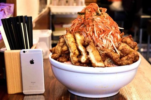 Но чтобы убедиться в том, что вы знаете, во что ввязываетесь, вот что представляет из себя эта гигантская тарелка рамэна: четыре порции лапши рамэн, 4 кг ростков бобов мунг, 682 мл бульона, большое количество жареного куриного мяса и немного перца чили в виде порошка, посыпанного сверху. А если и это звучит недостаточно устрашающе, то эти фотографии, сделанные MyNavi, должны дать вам довольно хорошее представление о том, насколько гигантским является это блюдо!